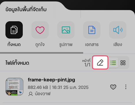 - กดปุ่ม "จัดการไฟล์" (ไอคอนรูปดินสอ) บริเวณด้านบนของรายการไฟล์