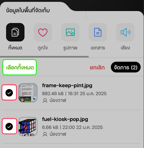 - สามารถกด "เลือกทั้งหมด" เพื่อเลือกไฟล์ทั้งหมดในหน้าปัจจุบัน