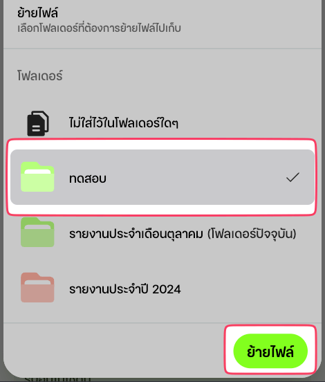 - เลือกไฟล์ที่ต้องการย้ายไปยังโฟลเดอร์