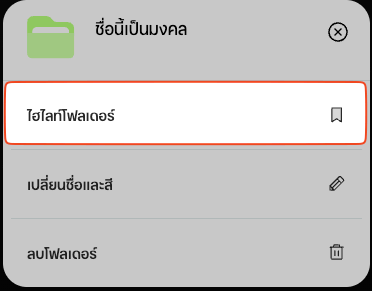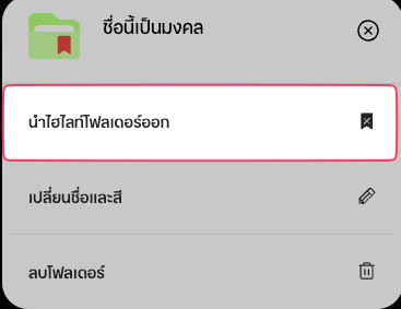 - กด "นำไฮไลต์โฟลเดอร์ออก"