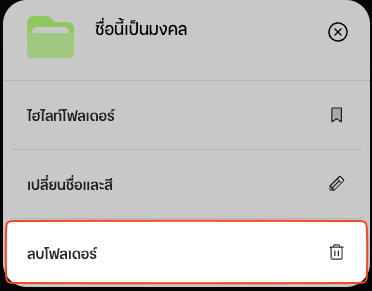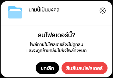 หมายเหตุ: การลบโฟลเดอร์จะไม่ลบไฟล์ในโฟลเดอร์นั้น