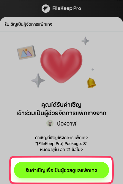 - สามารถกดปุ่ม "รับคำเชิญเพื่อเป็นผู้ช่วยดูแลแพ็กเกจ"
